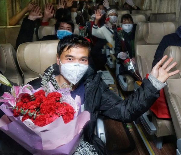 随后,员工代表将祝福的鲜花送到每一位返厂员工的手中。